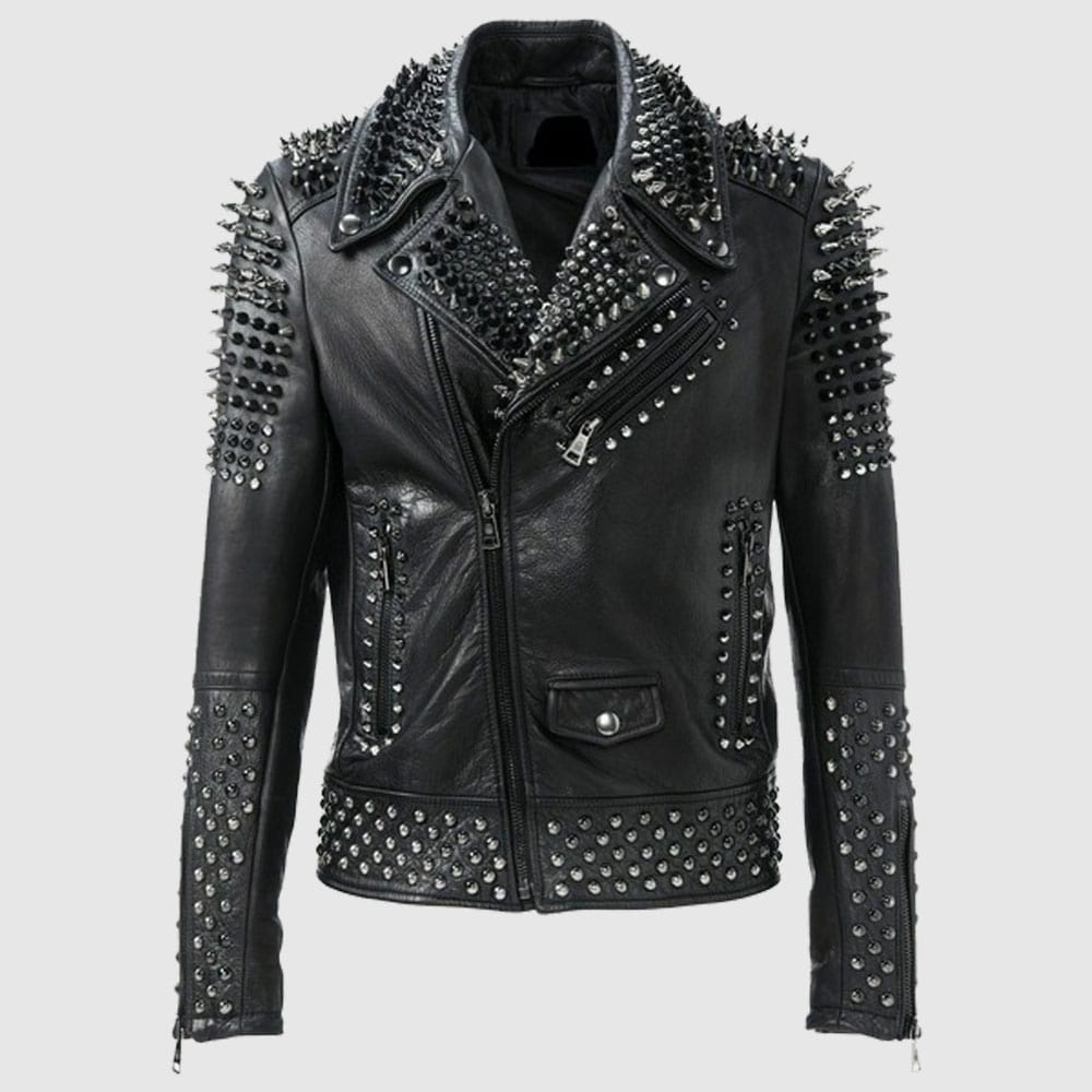 Men Make to Order Rock Punk Studded Jacket, Moto Biker Jacket