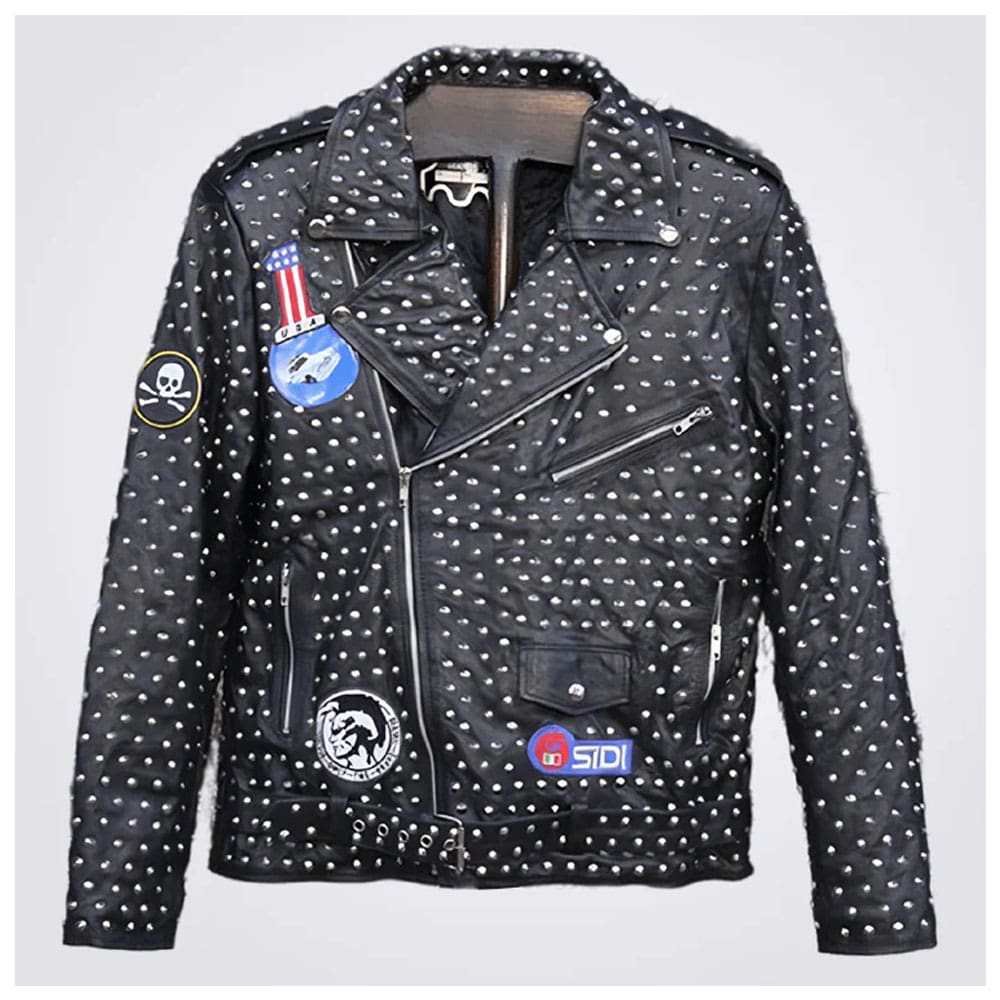 New Designer Full Studded Leather Jacket for Men With Embroidery Patch