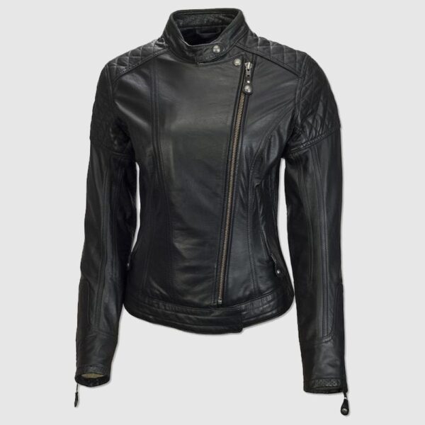 - Offset zipper and front zip pockets